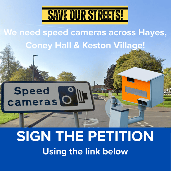 Hayes & Coney Hall Ward’s local Councillors have begun a petition to the Mayor of London for new speed cameras.